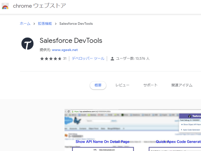Salesforce Developer Tool Suite – Chrome ウェブストア https://chrome.google.com/webstore/detail/salesforce-developer-tool/fiaakhiohminpblhmlihfcdhclmphjcd